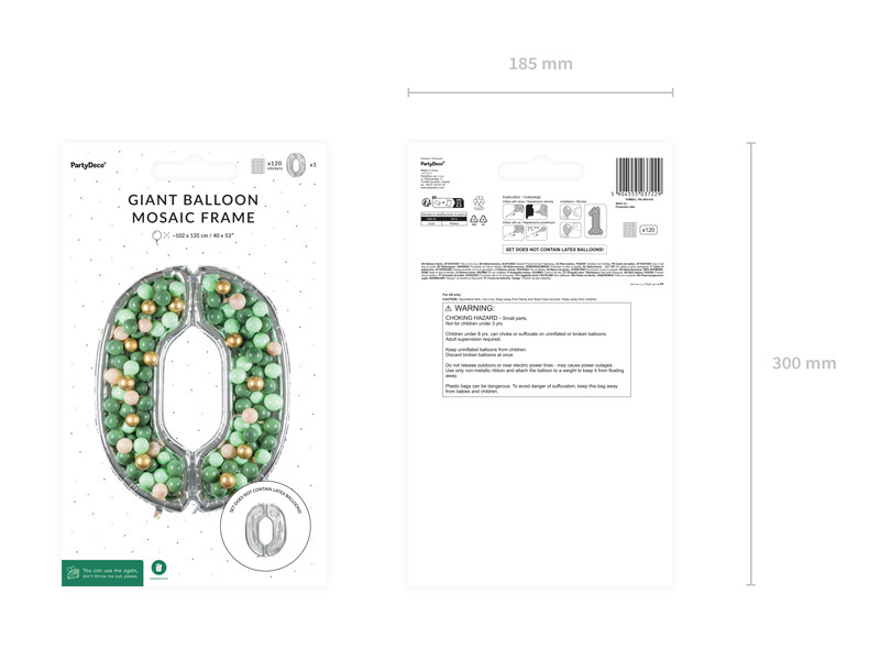 0-s számkeret latex léggömbökhöz, 126 cm, ezüst