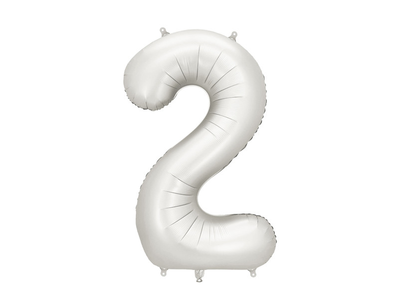 Szatén fólia Balloon Number 2 ezüst színben, felfújás előtti méret kb. 100 cm (39''), méret felfújás után kb. 86 cm (34"). Levegővel vagy héliummal felfújható. A készlet tartalmaz egy szívószálat. A léggömb önzáró. Horgokkal rendelkezik a dekorációkhoz való könnyű rögzítéshez.