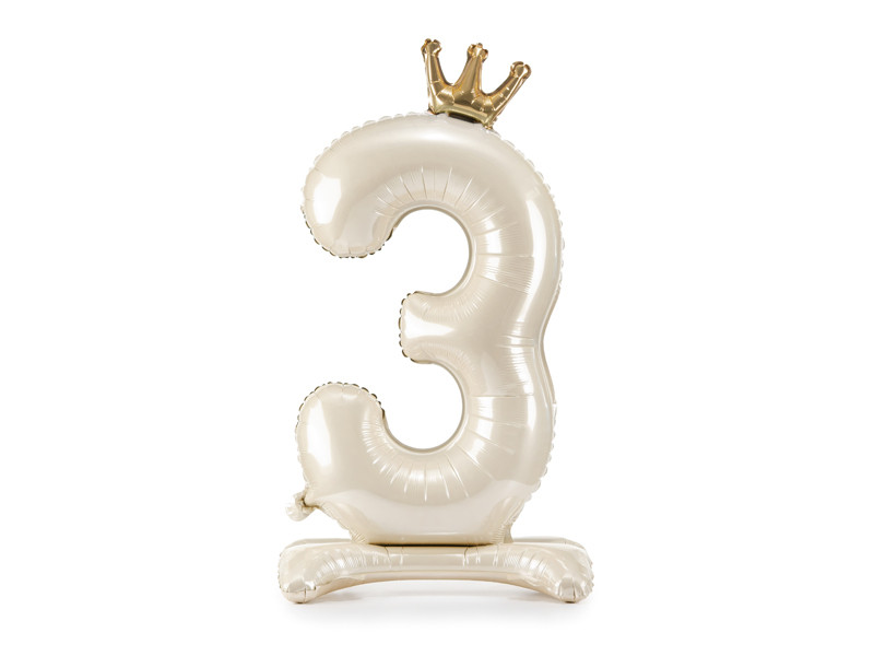 ''3'' számú álló fólia lufi, 84 cm, világos krém