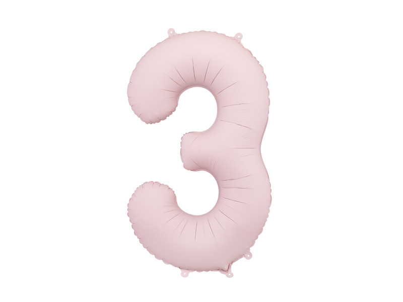 Matt fólia ballon Number 3 világos rózsaszín, felfújás előtti méret kb. 100 cm (39''), méret felfújás után kb. 86 cm (34"). Levegővel vagy héliummal felfújható. A készlet tartalmaz egy szívószálat. A léggömb önzáró. Horgokkal rendelkezik a dekorációkhoz való könnyű rögzítéshez.