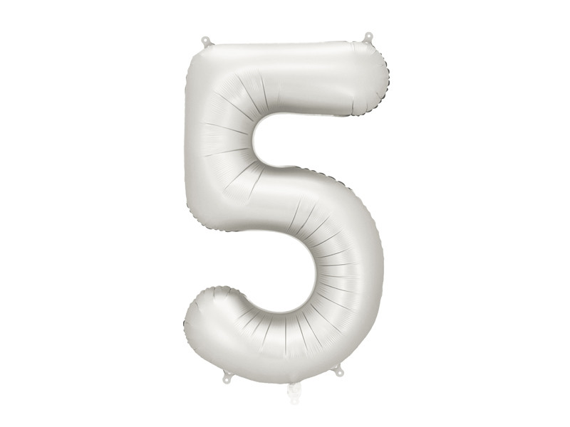 Szatén fólia 5-ös számú ballon ezüst színben, felfújás előtti méret kb. 100 cm (39''), méret felfújás után kb. 86 cm (34"). Levegővel vagy héliummal felfújható. A készlet tartalmaz egy szívószálat. A léggömb önzáró. Horgokkal rendelkezik a dekorációkhoz való könnyű rögzítéshez.
