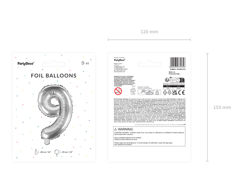 ''9'' számú fóliás léggömb, 35cm, ezüst