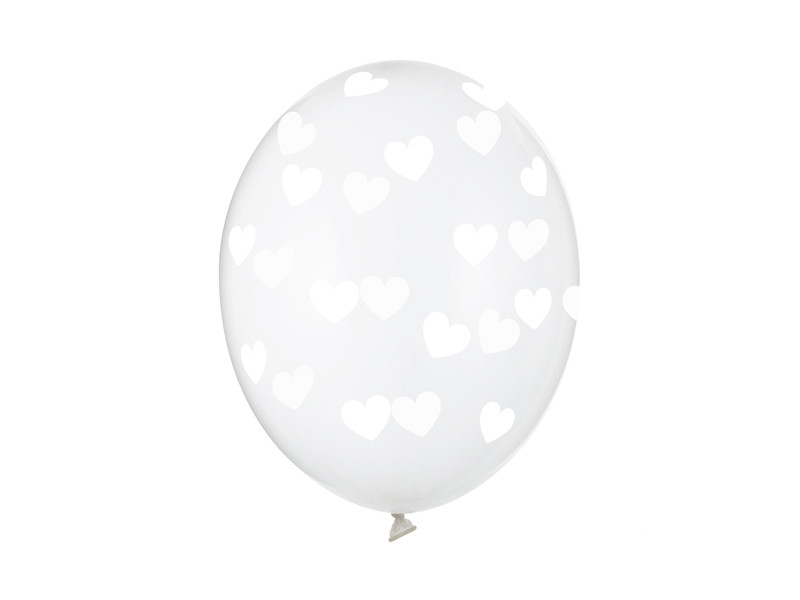 Balloons 30cm, Hearts, Crystal Clear (1 pkt / 6 pc.)