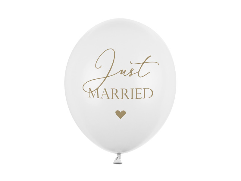 Balloons 30cm, Just Married, Pastel Pure White (1 pkt / 6 pc.)