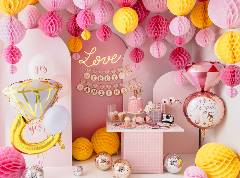 Banner Gyűrűk ''Wiecz��r panie��ski'' felirattal papírból, színkeverék. Magasság kb. 16,5 cm, zsineg hossza kb. 2,5 m.