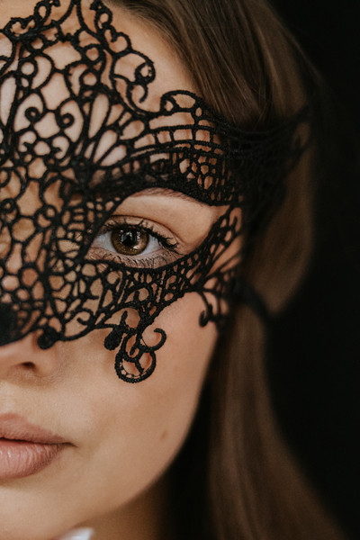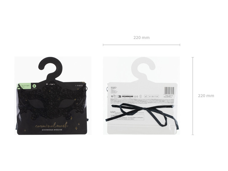 Csipke karneváli maszk, fekete, 20 x 11 cm