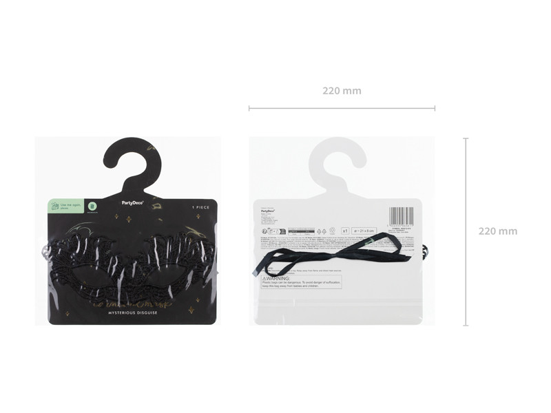 Csipke karneváli maszk, fekete, 21 x 8 cm
