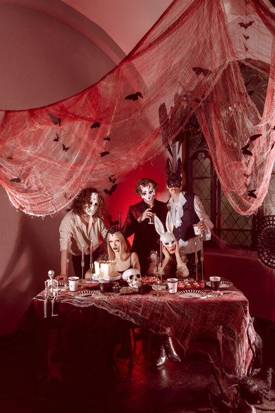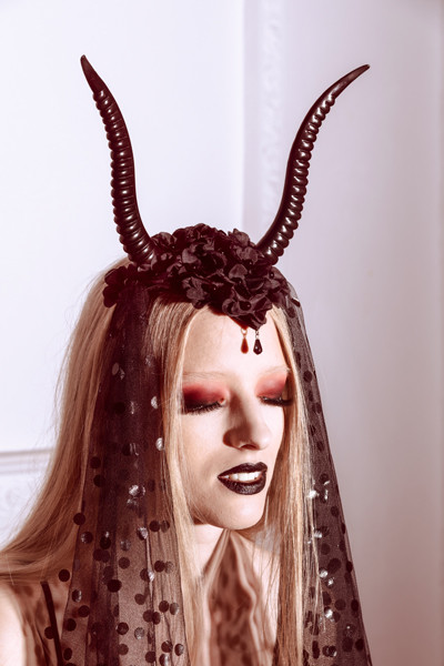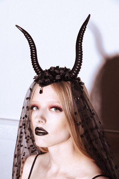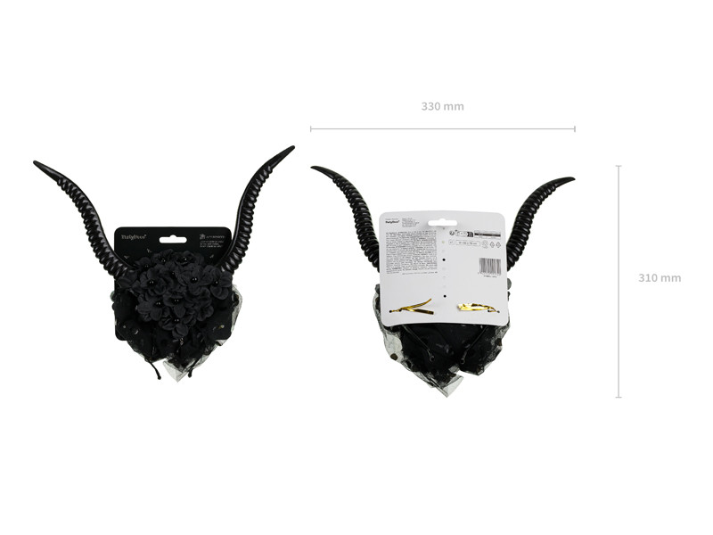 Devil Horns tüll fejpánt, 30x76 cm, fekete