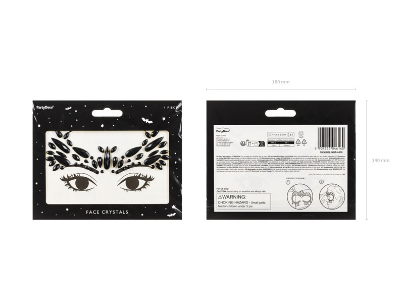 Face Decoration Crystals, Black, 14.5x5.5cm