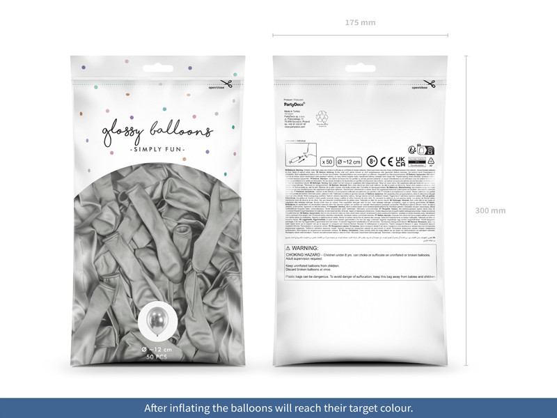 Fényes léggömbök 12 cm, ezüst (1 pkt / 50 db.)