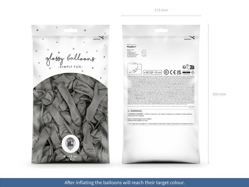 Fényes léggömbök 12 cm, sötét ezüst (1 db / 50 db)