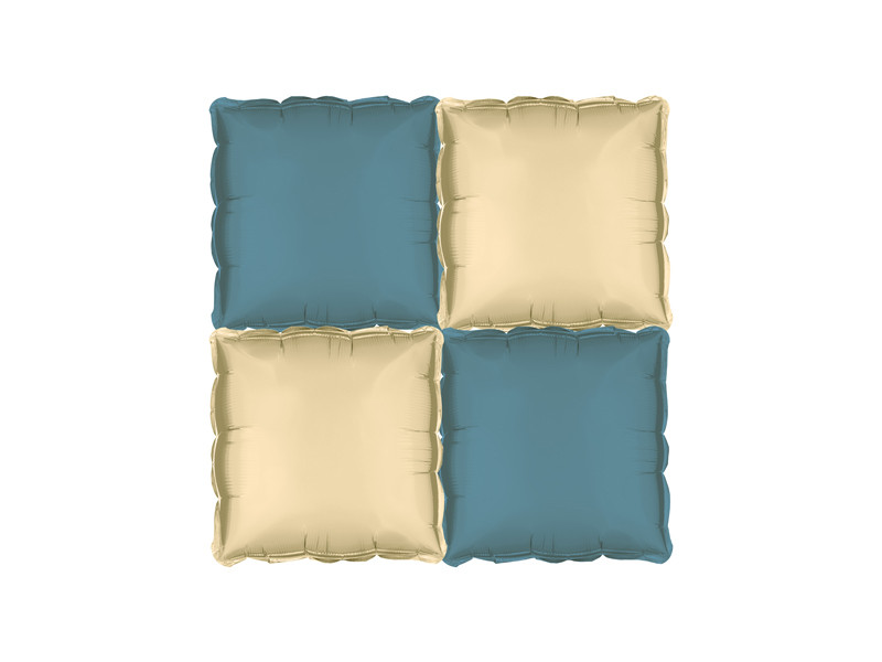 Balloon foil background Square, double-sided, mat. One side in beige colour, other side in navy blue. Dimensions before inflation approximately 40 x 40 cm. Dimensions after inflation 35 x 35 cm. Set of 4 pieces. To be inflated with air. Set includes a straw. (1 pkt / 4 pc.)