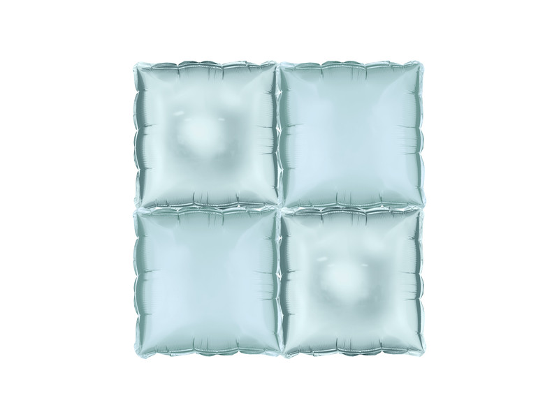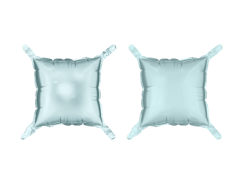 Balloon foil background Square, double-sided, in misty blue colour. One side in mat, other side in glossy. Dimensions before inflation approximately 40 x 40 cm. Dimensions after inflation 35 x 35 cm. Set of 4 pieces. To be inflated with air. Set includes a straw. (1 pkt / 4 pc.)