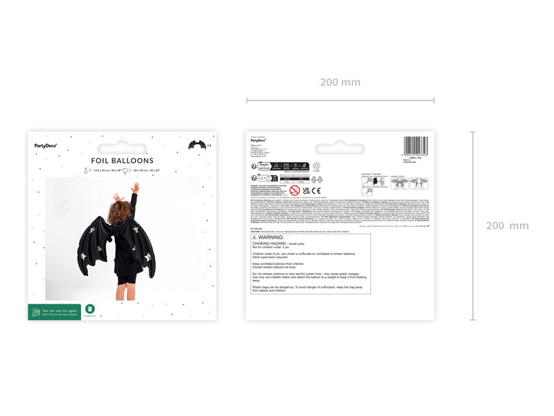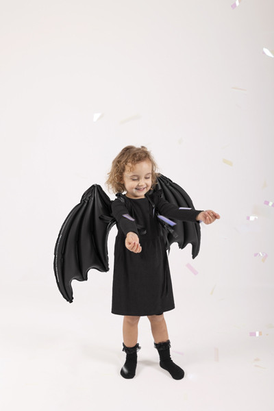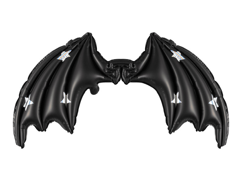 Fólia ballon denevérszárnyak, fekete matt csillagokkal, 85 x 50 cm