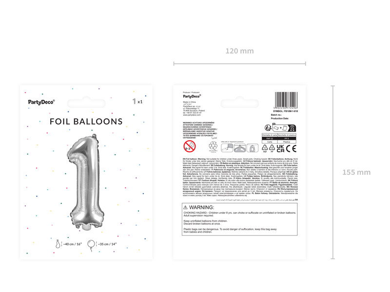 Fém fólia lufi ''1'' számú, ezüst, felfújás előtti méret kb. 40 cm (16''), méret felfújás után kb. 35 cm (14"). Fújja fel levegővel.