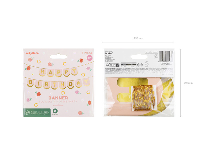 Happy Birthday Horses banner, 13 x 150 cm