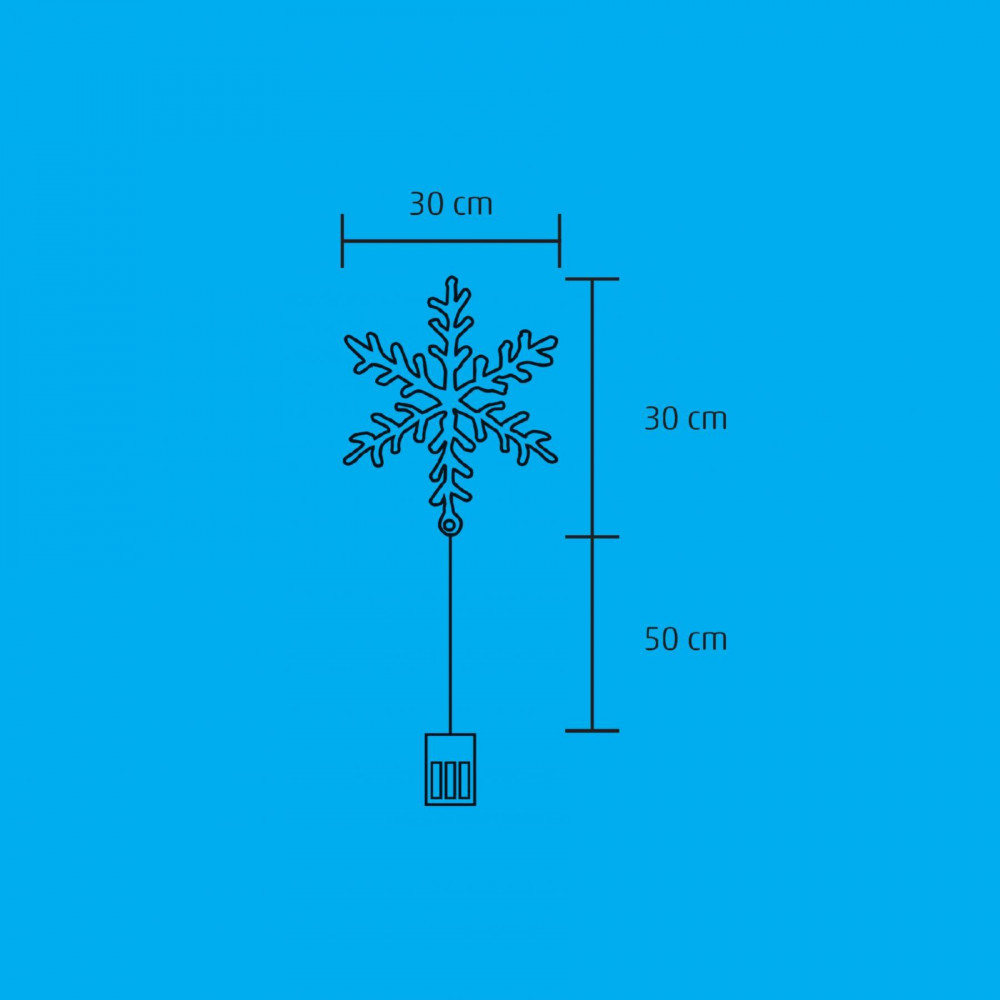 Ez az ablakdísz akril anyagból készült, melyet 16 db melegfehér LED világít meg. Az átlátszó vezetékkel könnyedén elhelyezhető bármely ablakon.