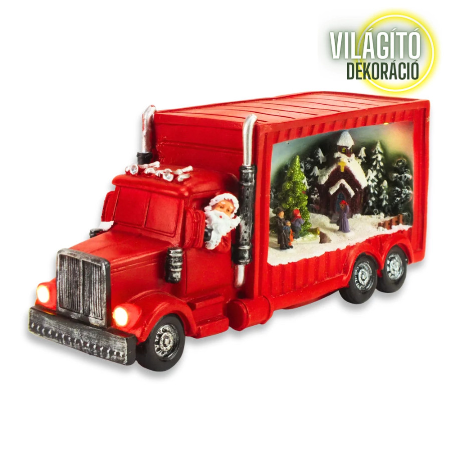 Igazán egyedi, ünnepi hangulatot biztosító piros világítós kamion.