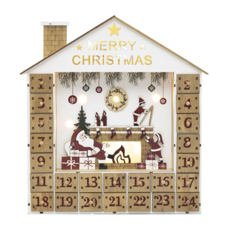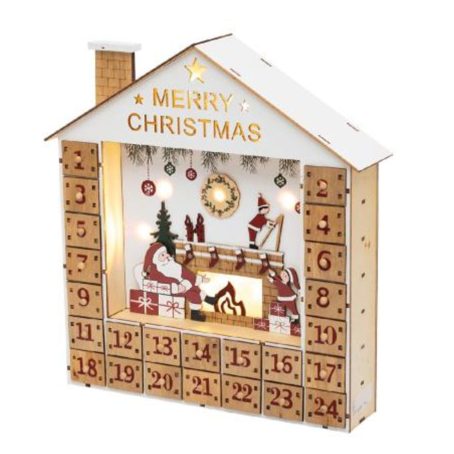 A naptár masszív MDF és PVC anyagból készült, így hosszú távon is megőrzi formáját és minőségét. 10 db melegfehér LED gondoskodik a kellemes fényhatásról, amely szolid ragyogással tölti be a helyiséget, anélkül hogy zavaróan erős lenne. Ez az adventi dekoráció nemcsak praktikus, hanem kifejezetten esztétikus is – otthonos hangulatot áraszt nappaliban, előszobában vagy akár gyerekszobában is.