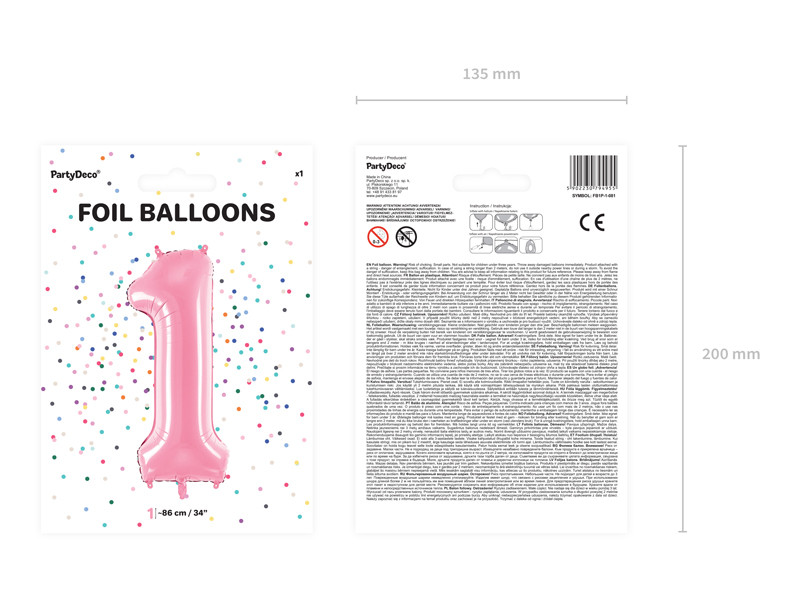 Pasztell fólia lufi ''1'' számú, rózsaszín, felfújás előtti méret kb. 100 cm (39''), méret felfújás után kb. 86 cm (34"). Fújja fel héliummal és levegővel.
