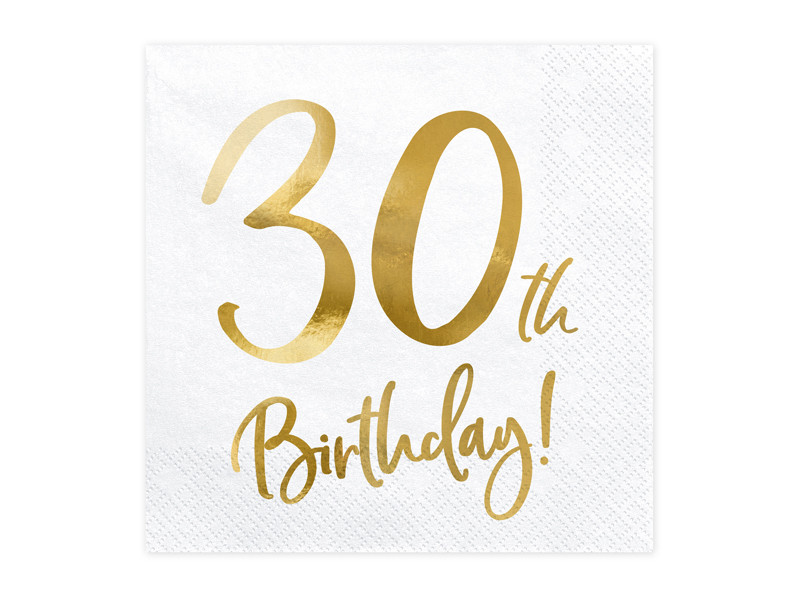 Szalvéta 30. születésnapra, fehér, 33x33cm (1 db / 20 db)