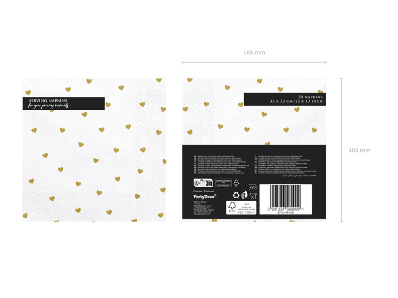 Szalvéta Szívek, fehér, 33x33cm (1 db / 20 db.)