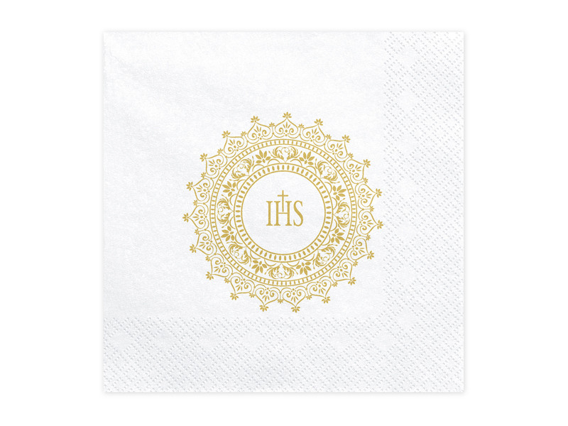 Szalvéta elsőáldozás - IHS, 33x33cm, arany (1 pkt / 20 db.)