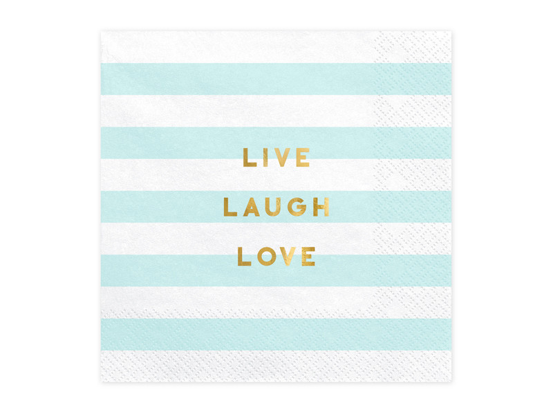 Szalvéták Yummy - Live Laugh Love, világoskék, 33x33cm (1 db / 20 db.)