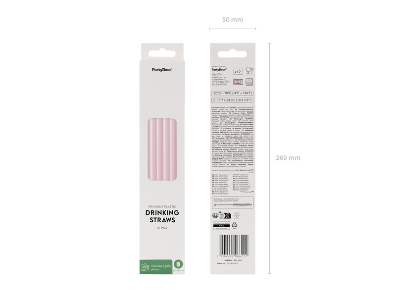 Műanyag szívószálak, 23 cm, rózsaszín (1 pkt / 12 db.)
