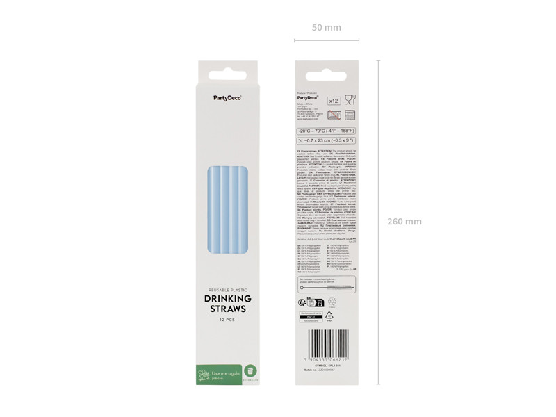 Műanyag szívószálak, 23 cm, világoskék (1 pkt / 12 db.)