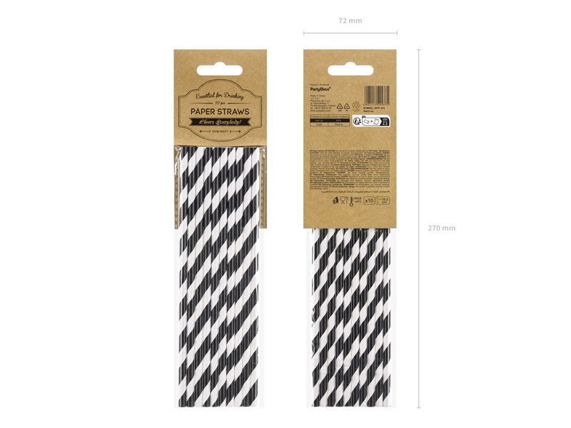Papírszívószálak, fekete, 19,5 cm (1 db / 10 db)
