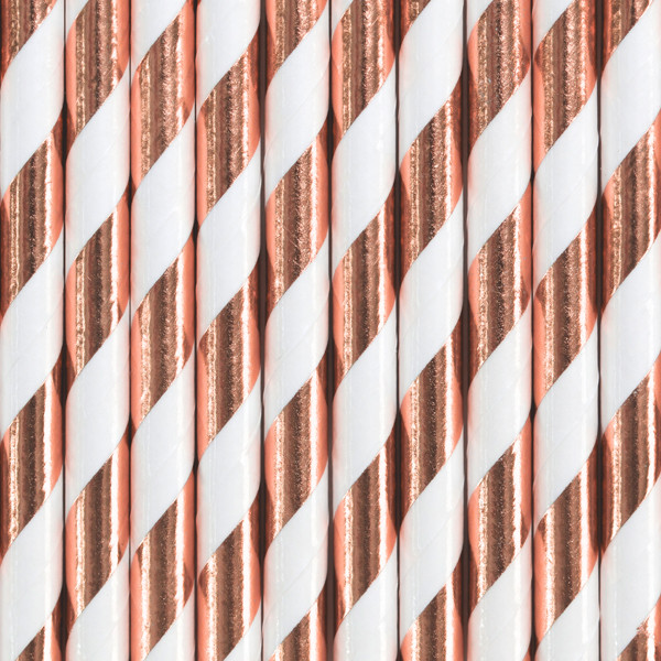 Papírszívószálak, világos rózsaszín arany, 19,5 cm (1 db / 10 db)