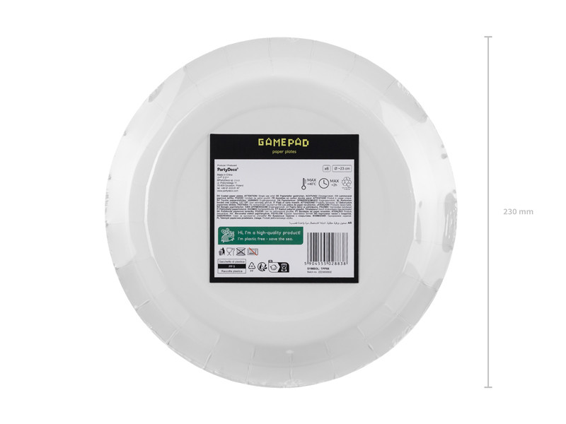 Papírtányérok Gamepad, 23x23 cm, mix (1 pkt / 6 db.)