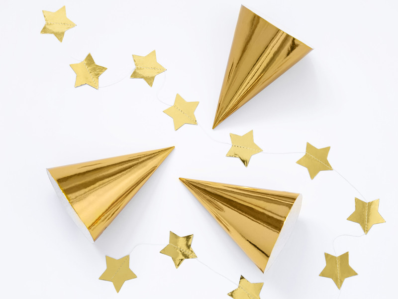 Party hats, gold, 16cm (1 pkt / 6 pc.)