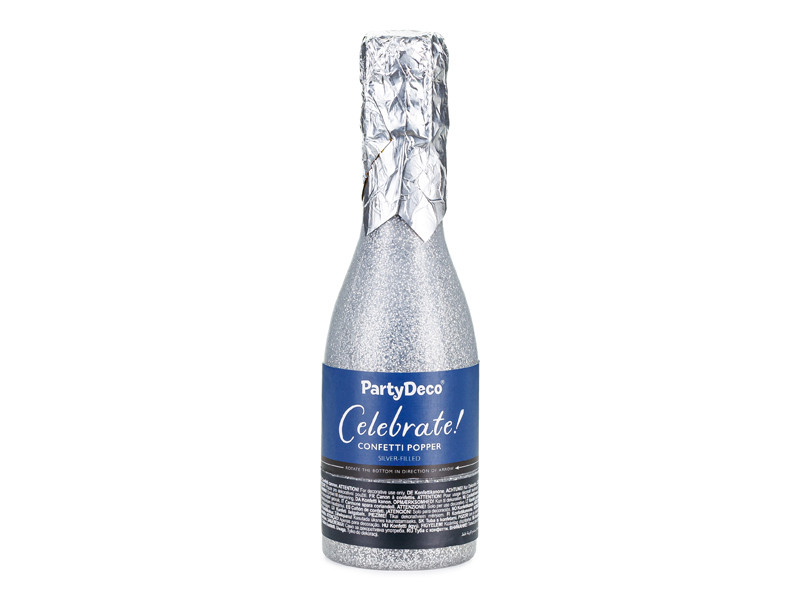 Pezsgős konfettiágyú, ezüst, 20,5 cm