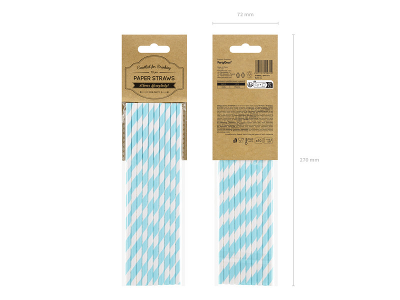 Papírszívószálak, égszínkék, 19,5 cm (1 db / 10 db)