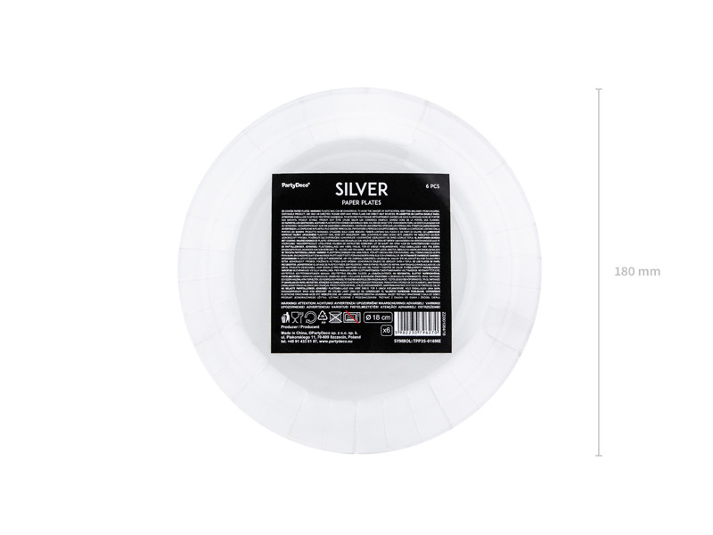 Tányérok, ezüst, 18cm (1 db / 6 db.)
