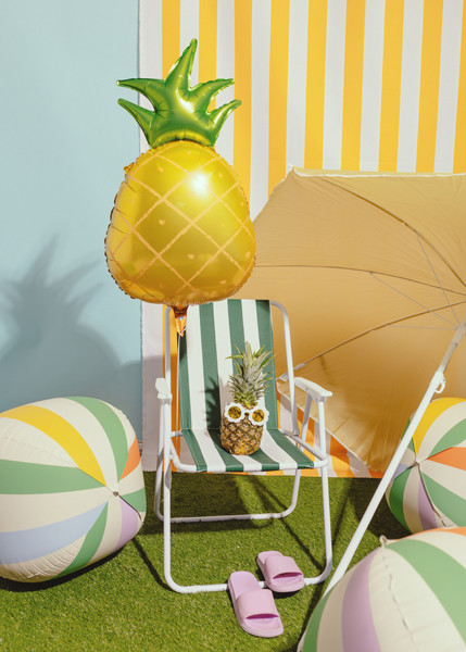 Ez a sárga-zöld ananász fólia lufi szett egyedi és vidám díszítőeleme lehet bármilyen eseménynek. Inflálás előtt kb. 50 x 82,5 cm, felfújva kb. 38 x 68 cm méretű. Könnyedén felfújható levegővel vagy héliummal, így lebegő dekorációként is használható. A csomag tartalmaz szívószálat a fújáshoz, a lufi pedig önzáró, könnyen rögzíthető kampókkal rendelkezik, ami megkönnyíti a dekorálást.