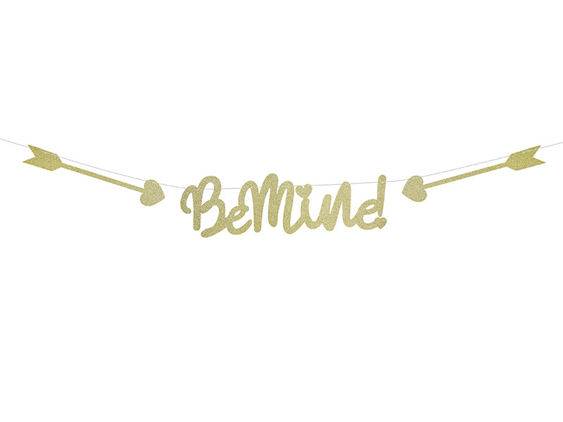 Banner Sweet Love - Légy az enyém!, csillogó arany, csináld magad, a készletben a Légy az enyém! felirat, 2 nyíl és kb. 2 m damil, méretek összeszerelés után: magasság kb. 11,5 cm, hossza kb. 90 cm.