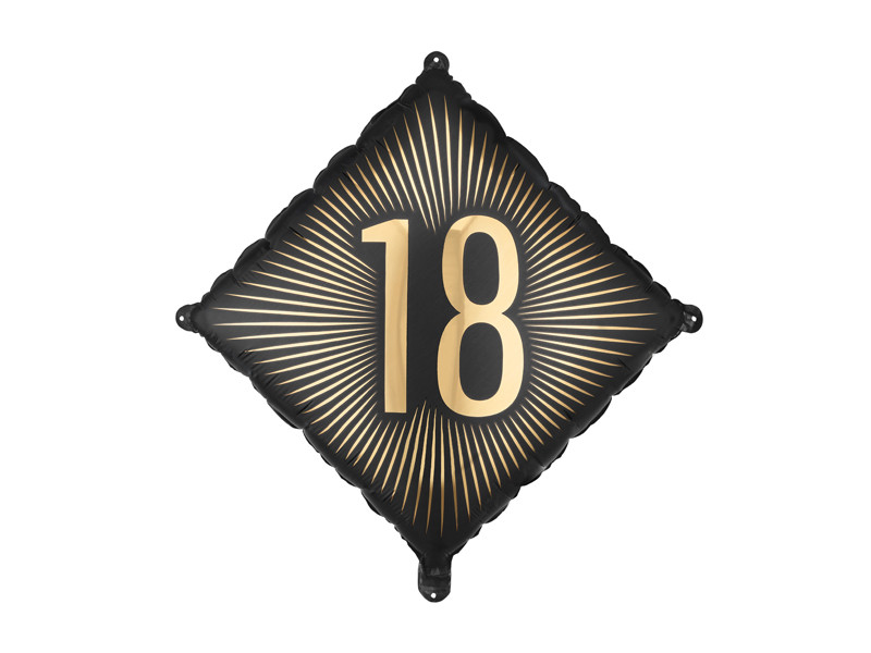 A fekete fólia lufi arany "18" felirattal elegáns és látványos dekorációs elem, mely kiemeli az ünnepi hangulatot 18. születésnapodon vagy bármilyen ilyen évfordulón.