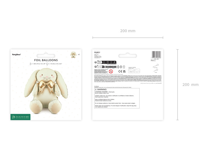 A krém és világos rózsaszín árnyalatú fólia léggömb vidám nyuszi formájával bármilyen ünnepi alkalmat feldob. Inflálás után kb. 74x84 cm méretű, így jól látható dekorációs elem. A készlet tartalmaz egy szívószálat az egyszerű felfújáshoz (csak levegővel fújható).