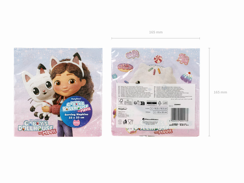 Ez a Gabby's Dollhouse mintás papírszalvéta csomag vidám, színes dizájnnal rendelkezik, ami tökéletes választás gyermekzsúrokhoz, családi összejövetelekhez vagy bármilyen gyermekbarát rendezvényhez.