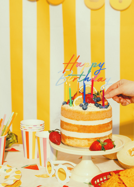 Matte, többszínű akrilból készült "Happy Birthday" feliratú tortadísz, mely 18 cm széles és 16,5 cm magas. Kiválóan alkalmas születésnapi partyk, családi összejövetelek vagy baráti ünneplések dekorálására.