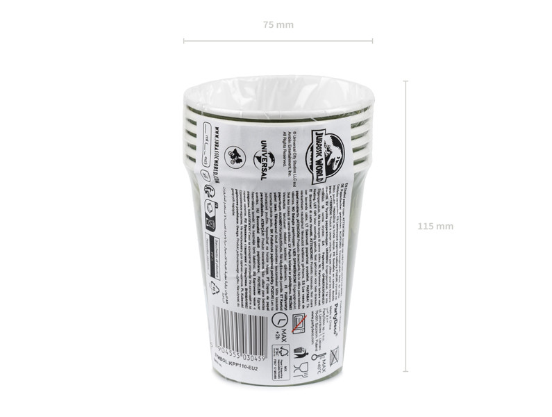 Ez a 6 darabos Jurassic World mintás papír pohár készlet élénk zöld színben, 250 ml-es űrtartalommal ideális választás gyerekeknek születésnapi bulikhoz, tematikus parti dekorációkhoz vagy bármilyen vidám összejövetelhez.