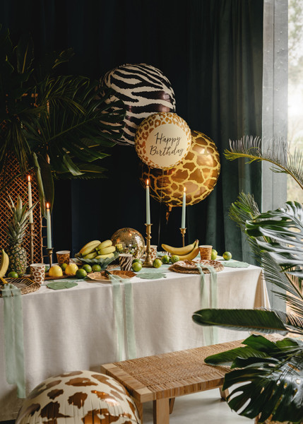 Kiváló minőségű fóliás lufi, amely különleges leopárdmintával és élénk színekkel díszített, tökéletes választás születésnapi partikhoz és ünneplésekhez.