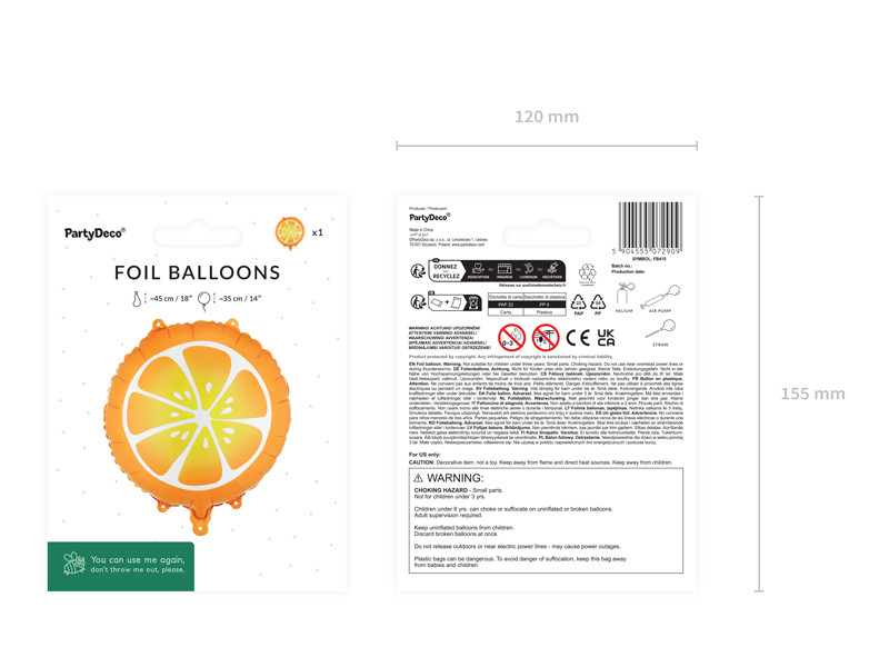 A narancssárga fólia lufi élénk színével feldobja bármely rendezvény hangulatát. Inflálás előtt átmérője kb. 45 cm, felfújva 35 cm-es átmérővel rendelkezik, így jól látható dekorációs elem.