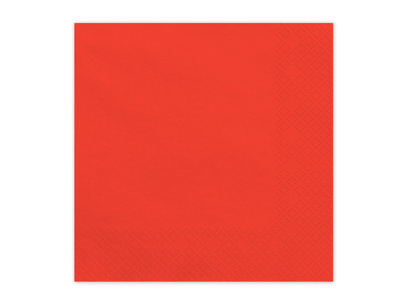 Élénk piros papírszalvéták, mérete kihajtva kb. 33x33 cm, hajtott állapotban kb. 16,5x16,5 cm. Egy csomagban 20 darab található. Ideális kiegészítő különféle ünnepi és hétköznapi alkalmakhoz.