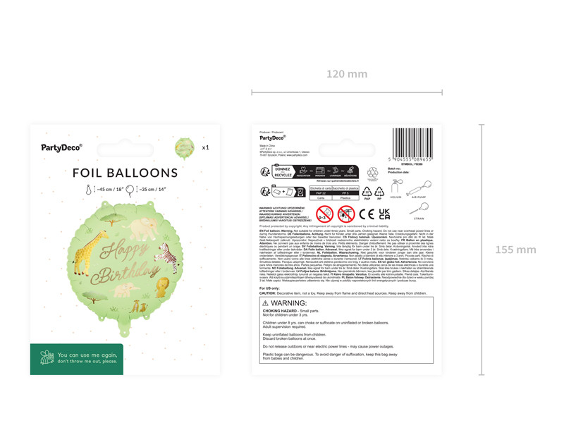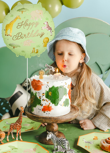 A Safari mintás 'Happy Birthday' fólia lufi színes, vidám megjelenéssel teszi különlegessé a születésnapi dekorációkat.