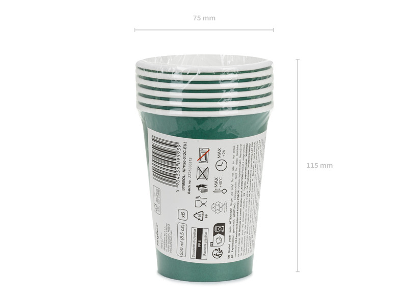 Ezek a sötétzöld papír poharak 250 ml-es űrtartalmukkal és kb. 9 cm-es magasságukkal ideálisak hideg italok fogyasztásához. Egyszer használatos, könnyen kezelhető termékek, melyek kiváló választás szabadtéri rendezvényekhez, piknikekhez és partikon való használatra.