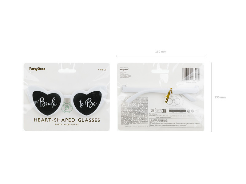 Ez a fehér szív alakú napszemüveg fekete lencsékkel "Bride to Be" felirattal kiváló választás bármilyen lánybúcsúra vagy esküvő előtti eseményre, hogy még stílusosabbá tegye az ünnepi megjelenést.